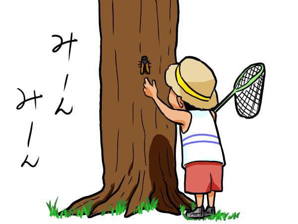 私は昆虫が大好きで、春はチョウやバッタ、夏はセミやカブトムシ、秋はトンボというように、虫取り網とかごを抱えて走り回っている子どもでした。まさにイラストのような。