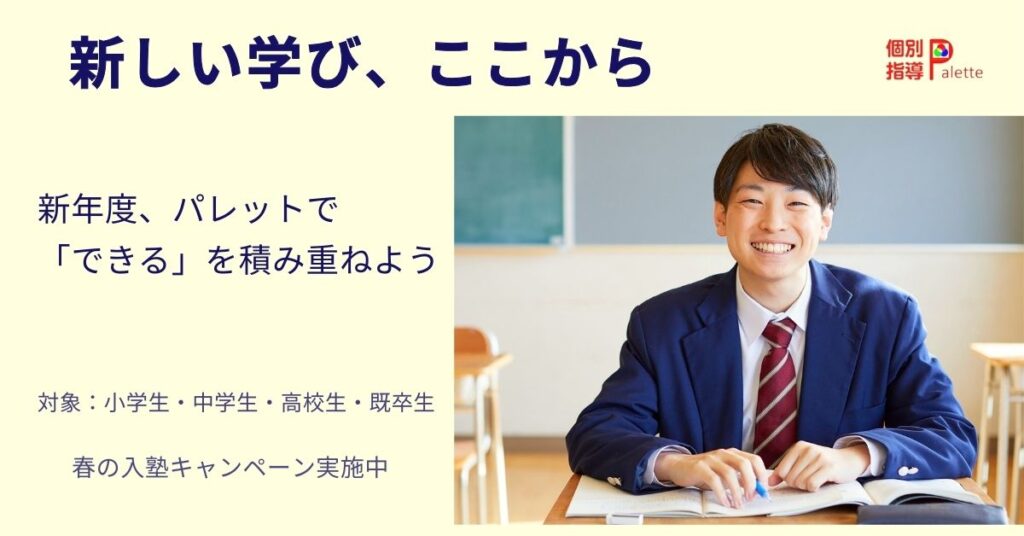 個別指導Paletteでは 春の入塾キャンペーン を実施しています。